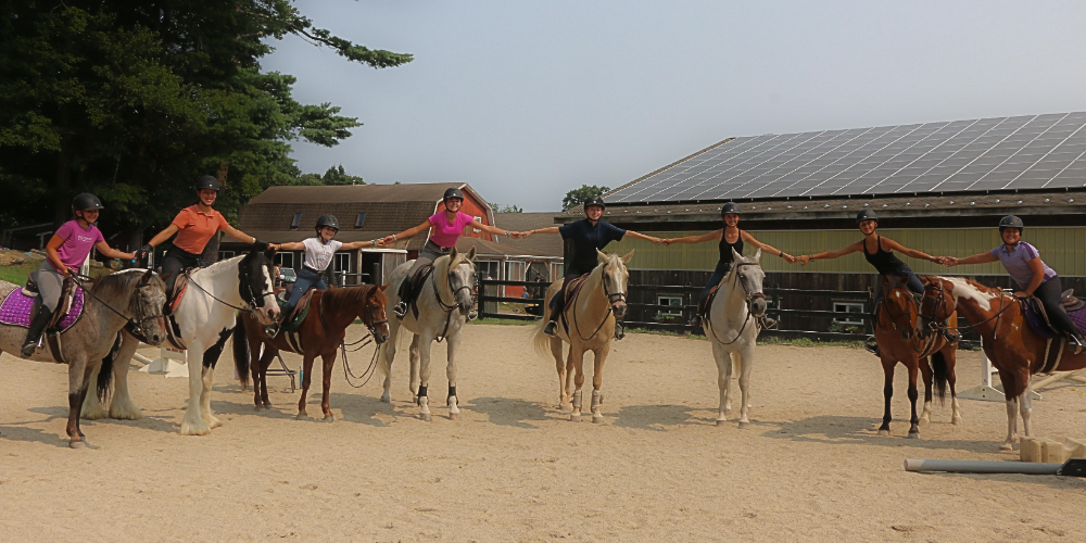 Our farm is home to 2 indoor arenas with various heated rooms, a 100 x 200 outdoor arena with stadium jumps, an eventing course for schooling, and access to nearby trails. in addition, our barns are filled with a variety of horses and ponies to suit the needs of all of our riders — beginner, intermediate, and advanced alike. Find sweet and talented horses that span from a super easy ride for the very beginner to learn on, to challenging mounts for showing in the Jumper ring and showing on our IEA Team. Click below to learn more about our Massachusetts-certified camp, one of the best riding and farm camps in the Metrowest area.
